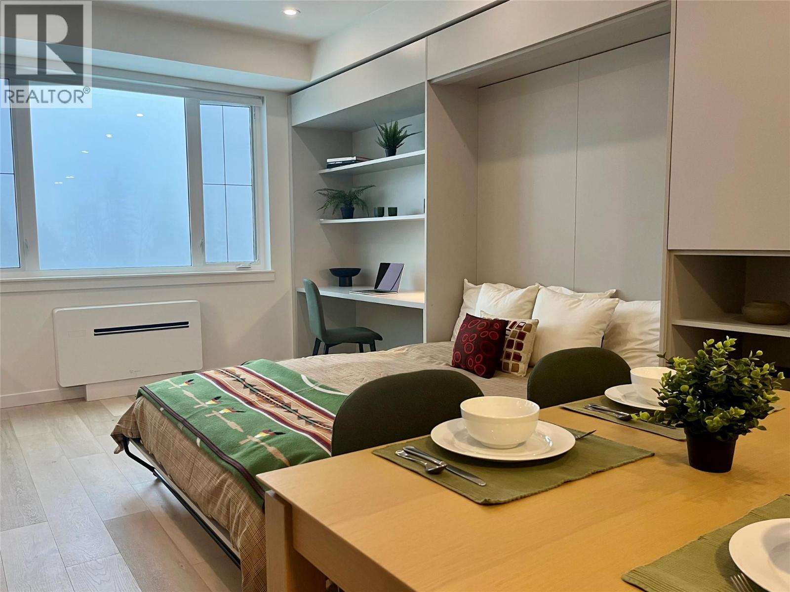 Furnished | Brand New | Designer Palette: Brand new and never occupied, this furnished studio suite features a sophisticated taupe cabinetry colour scheme paired with a rich dark-green furniture package, creating a warm, modern alpine aesthetic that feels both timeless and elevated. This suite has a good parking spot, close to the elevator. Located in the heart of RED’s base area, the lifestyle here is effortless. Owners and guests enjoy access to the full suite of Crescent amenities, including the rooftop BBQ lounge, co-work space, fitness room, and the stylish Alice Lounge, offering high-altitude views across the mountain. Steps to everything RED, this is a location that delivers both convenience and bragging rights. Totally turn-key and no-fuss, the suite is complete with new furnishings, appliances, and finishes and rental management is offered through Red Mountain Resort Lodging allowing complete flexibility between personal use and rental income. RED Mountain continues to expand its year-round offerings, including lift-access mountain biking, a new terrain park, and a base-area plaza coming to fruition. Pet-friendly, with 1 parking stall and ample storage. Strata fee: $311.60/month. A refined, move-in-ready studio in one of RED’s most desirable locations. Let's make a deal! (id:60292)