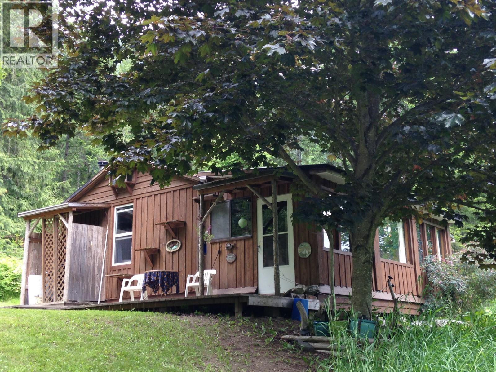 What a truly beautiful setting! This 5.3 acre property has been enjoyed for many years as a family vacation spot - it may be perfect for your family fun spot as well! 'Off-grid' 5.32 acres, perfect set up the way it is, or bring in the power, and other services and build your 'forever' home! The main cabin is 24' x 26' and has 2 decks plus there's a closed in sun porch with plenty of windows. The stove and fridge are propane, there's a TV, VCR, and air conditioner - use the generator to power up what you need! 2 small yurts in their own private 'camp spots' with firepits, and also a covered place for a small travel trailer as well. Check out the cool tree fort, horeshoe pit, and the neat/clean double seated outhouse. The property is treed to the highway, and only partially cleared at the bottom, with trails to the camping spots, and other areas on the property. Nice building site on the upper portion as well. Approximately 500' of waterfront on the Arrow Lake. Easy access to the lake - the awesome dock has deck areas and stairs which gives you access to the lake at various water levels - a great place to sit and take in the sunshine, the views, and enjoy the peacefulness that makes this property so special. You really need to see this place in person to appreciate everything it has to offer! Call today and make an appointment to view! (id:60292)