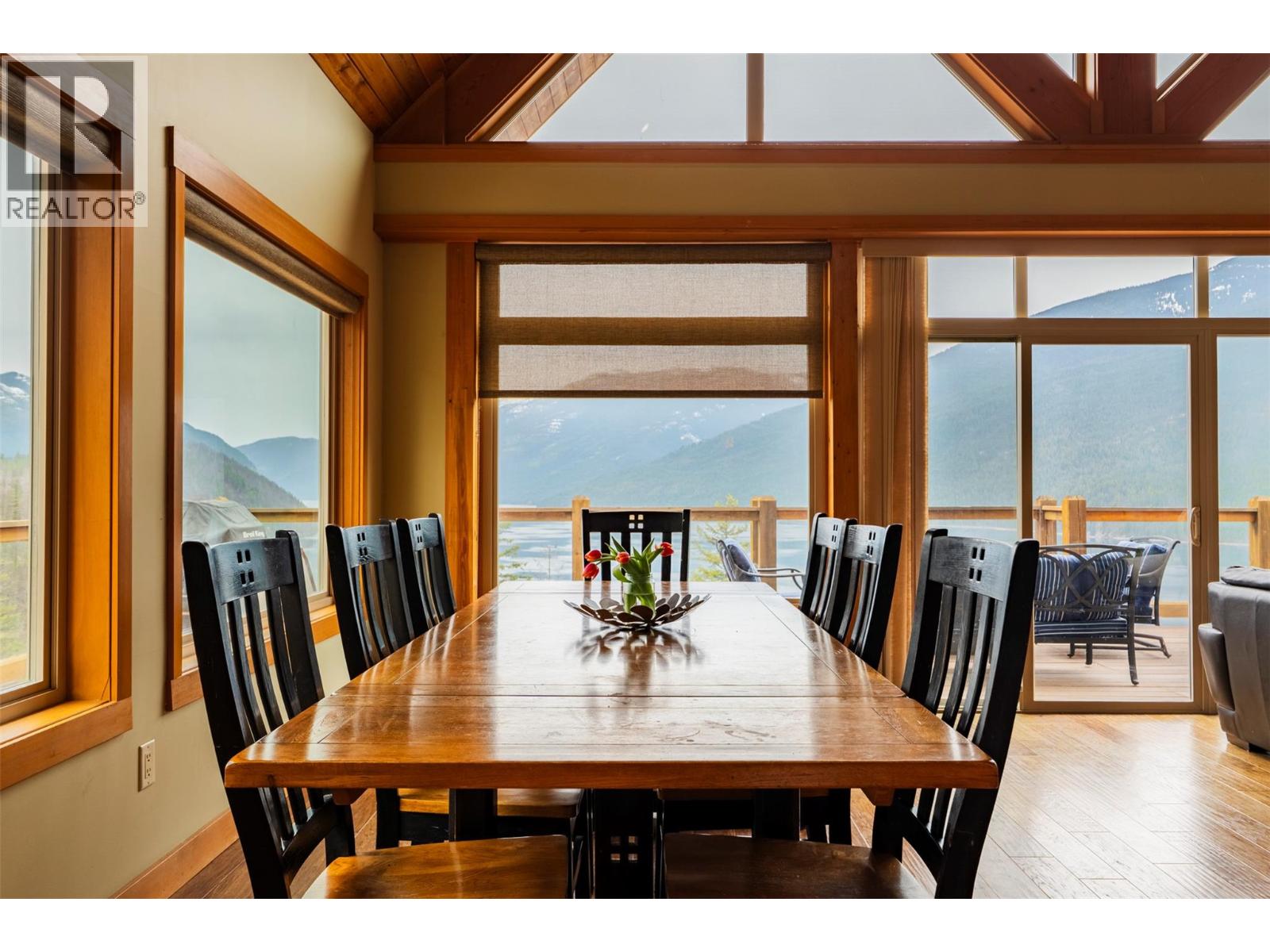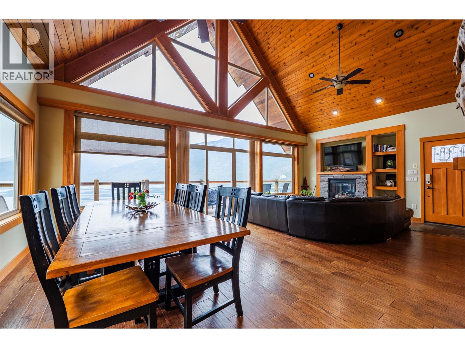 Nestled on the pristine shores of Slocan Lake, this exquisite waterfront residence represents the pinnacle of West Kootenay luxury. Meticulously crafted timber frame construction and top-tier finishes, the home’s quality craftsmanship is evident in every hand-fitted joint and soaring vaulted ceiling. The heart of the home is a gourmet kitchen designed for the culinary enthusiast, flowing seamlessly into an expansive living area where floor-to-ceiling windows frame the dramatic lake and mountain vistas. Modern luxury meets efficiency with a state-of-the-art built-in sound system and high-efficiency climate control for year-round comfort. Retreat to the lofted primary suite, a private sanctuary featuring an en suite with a deep soaker tub and a sleek slate shower that feels like a personal spa. With four spacious bedrooms and three full bathrooms, there is generous room for family and guests to gather. This home is situated within an exclusive 9-acre strata, shared with only four other residences to ensure unparalleled privacy and a quiet, community feel. Step outside to enjoy over 500 feet of private waterfront access, where the private dock awaits for summer boating to explore serene the serene or crisp morning swims. The expansive private deck offers an idyllic setting for evening entertaining or quiet rejuvenation amidst nature’s splendour. Whether utilized as a world-class vacation retreat or a permanent home, this property is the ultimate in refined lakeside living. (id:60292)