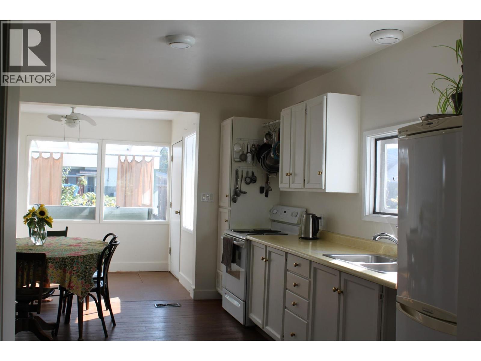 Location, privacy, gardens....your own little ""Urban Homestead""! Enjoy the taste of your own fresh vegetables grown in the raised garden beds, fresh plums, 3 varieties of grapes, raspberries, goji and josta berries, black currents! Fully fenced lot, with nice private sitting areas perfect for relaxing at anytime of the day! Or enjoy your morning coffee on the covered deck out back. This charming, cozy little home has 2 bedrooms, full bath with clawfoot tub, bright kitchen space, high ceilings, original fir floors. Electric baseboard heat plus there's a wood heater in the living room for that little bit of extra warmth on cooler winter nights, and also a solar powered heater in the kitchen. The basement has a full bath, cold room, and storage space - it currently has a covered outside entry, but there is an inside entry that could be opened up and used as well. The 20' x 13' shed is wired and great for a workshop space! Lots of room in the backyard for more gardens, or perhaps a few chickens....and there's room off the laneway to build a garage and/or carriage house. Only 1 block from the main street, 2 blocks to the waterfront, and close to all amenities. Check out this little ""hide-away"" thats right downtown and you can 'stroll to everything'! (id:60292)