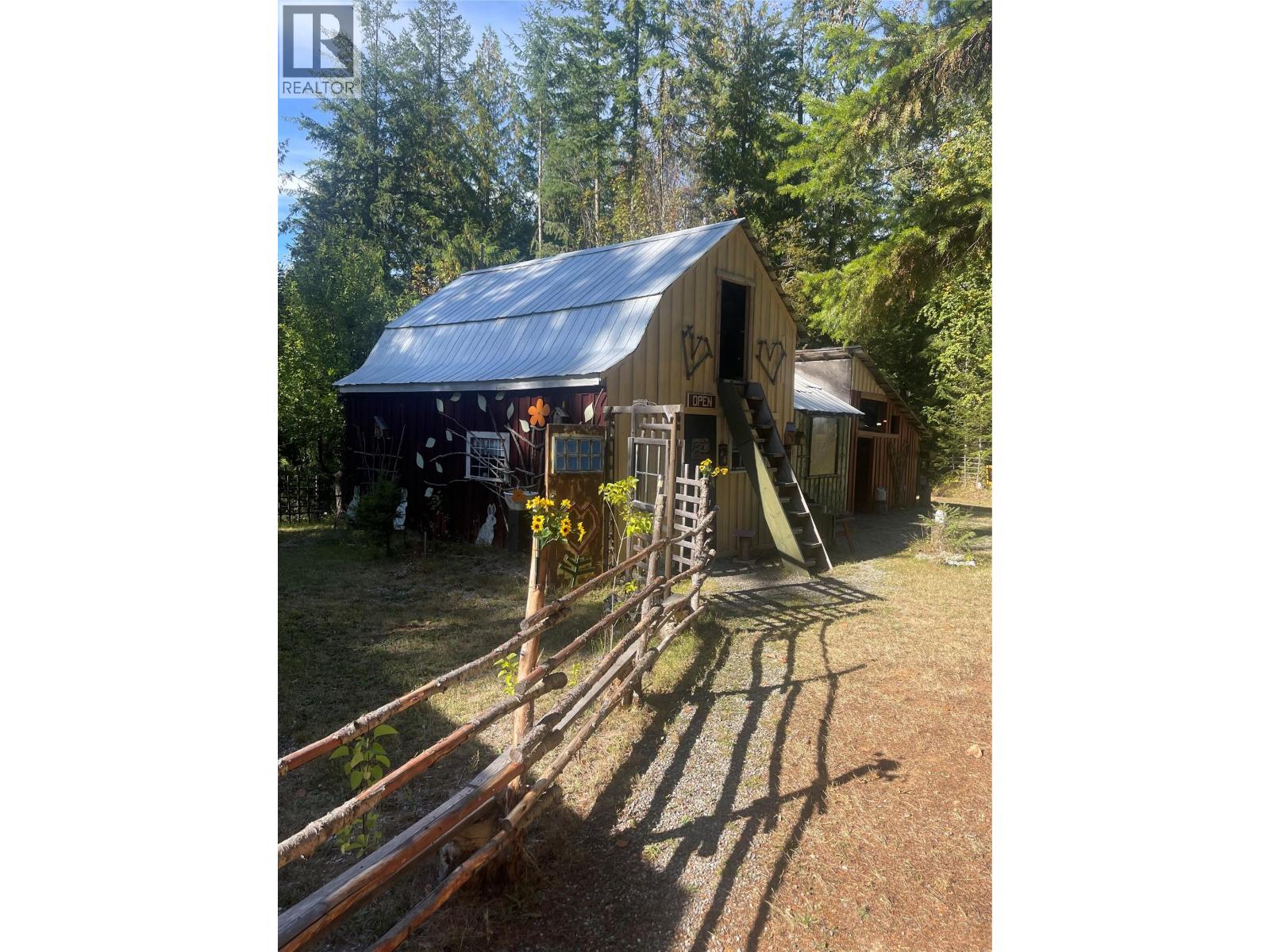 18.4 acres in Burton, near the end of McCormack Rd. and close to Snow Creek. Cozy cottage home, barn with loft, garage with loft. It's a retreat for family fun year round! This property is totally set up to live year round, or just enjoy as your vacation spot - the upper section has a cleared area, perfect for animals, the lower part is great for friends/family to come visit with their RV. A short walk through the trail on Crown Land and you're at Snow Creek. The cottage has 1 bedroom, a full bath with shower, laundry, and a nice living space with wood burning stove plus a covered deck out front. Garage with loft, gardens, walking and quad trails throughout the area. Short drive to the public beach and boat launch. Burton is an awesome rural community 20 min south of Nakusp and has plenty of backcountry to explore! (id:60292)
